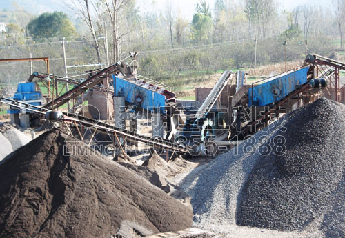 大塊石料經(jīng)料倉(cāng)由振動(dòng)給料機(jī)均勻地送進(jìn)鄂式破碎機(jī)進(jìn)行粗碎,粗碎后的石料由膠帶輸送機(jī)送到反擊式破碎機(jī)進(jìn)行進(jìn)一步破碎;細(xì)碎后的石料由膠帶輸送機(jī)送進(jìn)振動(dòng)篩進(jìn)行篩分,篩分出幾種不同規(guī)格的石子,滿足粒度要求的石子由成品膠帶輸送機(jī)送往成品料堆;不滿足粒度要求的石子由膠帶輸送機(jī)返料送到反擊式破碎機(jī)進(jìn)行再次破碎,形成閉路多次循環(huán)。成品粒度可按照用戶的需求進(jìn)行組合和分級(jí),為保護(hù)環(huán)境,可配備輔助的除塵設(shè)備。為滿足客戶不同的加工需要,可配備圓錐式破碎機(jī)、除塵設(shè)備等。