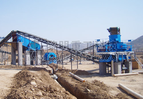 大塊石料經(jīng)料倉由振動給料機(jī)均勻地送進(jìn)顎式破碎機(jī)粗碎,粗碎后的石料由皮帶輸送機(jī)送到反擊式破碎機(jī)細(xì)碎,細(xì)碎后的石料再由皮帶輸送機(jī)送進(jìn)振動篩篩分,篩分出幾種不同規(guī)格的石子,滿足粒度要求的石子由成品皮帶輸送機(jī)送往成品料堆;不滿足粒度要求的石子由皮帶輸送機(jī)返料送到反擊式破碎機(jī)再次破碎,形成閉路多次循環(huán)。