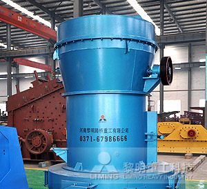 大塊狀物料經(jīng)顎式破碎機破碎到所需要粒度后,由提升機將物料送至儲料斗,再經(jīng)振動給料機均勻定量連續(xù)地送入主機磨室內(nèi)進行研磨。粉磨后的粉子被風機氣流帶走,經(jīng)分析機分級,符合細度的粉子隨氣流經(jīng)管道進入大旋風收集器內(nèi),進行分離收集,再經(jīng)粉管排出成品粉子。