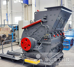 主機(jī)通過(guò)電機(jī)、三角皮帶帶動(dòng)主軸,從而使轉(zhuǎn)子旋轉(zhuǎn),錘頭受到旋轉(zhuǎn)時(shí)所產(chǎn)生的離心力向四周伸開(kāi),大塊物料從進(jìn)料口進(jìn)入破碎腔之后,便被高速運(yùn)動(dòng)的錘子擊碎。破碎合格的物料則由下部有縫隙的蓖條排出,不合格的則留在破碎腔內(nèi),被錘子和承擊鐵塊反復(fù)作用,直至能夠合格排出。
