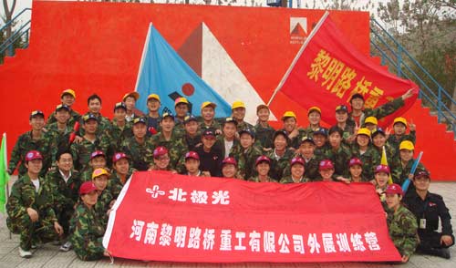 2007年4月21日,北極光大乙風光園外展訓(xùn)練基地內(nèi),“河南黎明路橋重工有限公司”的旗幟迎風飄揚,公司40余名新員工在這里參加了為期一天的“同心黎明”拓展訓(xùn)練。