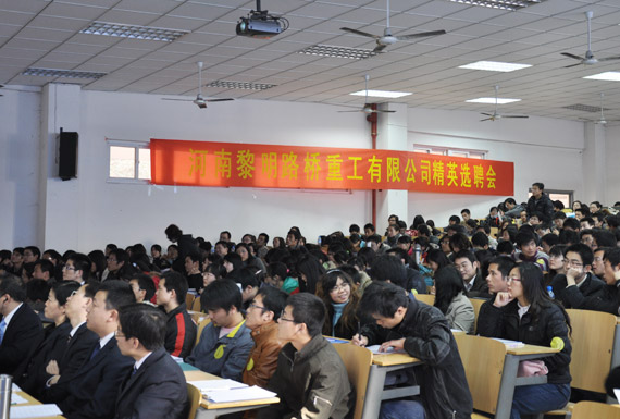 河南黎明重工科技股份有限公司(原河南黎明路橋重工有限公司)2010年校園大型精英選聘會(huì)自11月20日開啟以來,已先后在西安交通大學(xué)、鄭州大學(xué),河南科技大學(xué)、太原理工大學(xué)等十幾所知名高校成功舉行了多次大型專場招聘會(huì),每場應(yīng)聘人數(shù)均在200人以上,其中在鄭州大學(xué)同時(shí)參加選聘會(huì)的同學(xué)多達(dá)500余人,在西安交通大學(xué)參加的同學(xué)也有近300人之多。