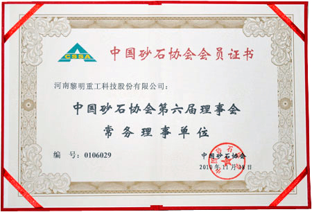 公司一直是中國砂石協(xié)會理事單位,眾多產(chǎn)品經(jīng)廣泛的市場應用,贏得了國內(nèi)外客戶的普遍贊譽,被中國砂石協(xié)會確定為推薦設備。本屆再次由新?lián)Q屆的中國砂石協(xié)會推薦為常務理事單位,表現(xiàn)了中國砂石協(xié)會對黎明重工科技產(chǎn)品質量的充分認可。