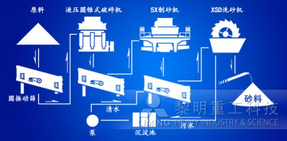 山東某老板投資300萬元建設(shè)砂場,以700mm以下的河卵石為原料生產(chǎn)機制砂。該場采用黎明重工的GZD1100*4200振動給料機、PE750*1060顎式破碎機、CS160圓錐式破碎機、5X1145制砂機、3YZS2460振動篩、XSD3016洗砂機兩臺的機制砂生產(chǎn)線配置,時產(chǎn)100方。如此,河道中90%以上的河卵石獲得開采利用,利用率的提高,相應(yīng)地創(chuàng)造了更大的利潤空間。 -