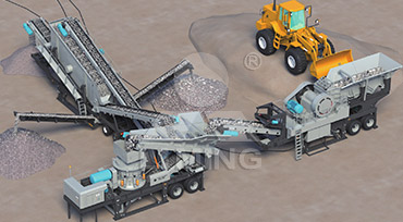 移動生產(chǎn)線通常以外接電力電源為動力來源,原料由GF系列振動給料機(jī)均勻地送到C6X系列顎式破碎機(jī)或者CI5X系列反擊式破碎機(jī)進(jìn)行粗碎作業(yè),粗碎后的物料由皮帶輸送機(jī)送入到圓錐破碎機(jī)或者反擊式破碎機(jī)進(jìn)行進(jìn)一步破碎,細(xì)碎后的物料被輸送到S5X系列振動篩進(jìn)行篩分,達(dá)到成品粒度要求的物料被由成品輸送帶輸出即為成品;未達(dá)到成品粒度要求的物料從振動篩返回制砂機(jī)或者圓錐破重新加工,形成閉路多次循環(huán)。成品粒度可按用戶的需求進(jìn)行組合和分級。