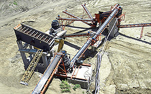 工程師為客戶配置了KE860-1粗碎移動站和KH300-2中細碎篩分移動站。當大塊石料進入料倉后,通過GZD1300×4900振動給料機進入PEW860歐版顎破初次破碎,后由皮帶輸送機將石料送入HPT300液壓圓錐破中碎,破碎后的石料被皮帶機運到3YZS1860振動篩進行篩分,篩分出成品料。