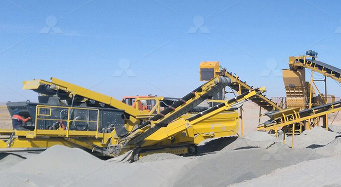花崗巖大塊物料經(jīng)料倉由振動給料機均勻喂料,輸送到顎式破碎機進行粗碎,粗碎后的物料經(jīng)振動篩篩分后,由皮帶輸送機輸送至反擊式破碎機或圓錐破碎機進行中細碎。