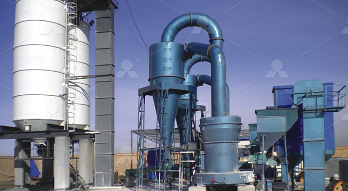 第二階段:磨粉破碎后的小塊石膏經(jīng)提升機(jī)送至料倉,再經(jīng)振動給料機(jī)將其均勻定量的送入磨粉機(jī)研磨室內(nèi)進(jìn)行研磨。