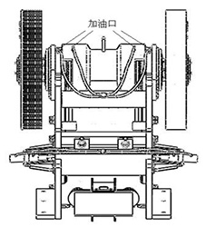 試機前必須確認(rèn)各連接螺栓已擰緊,確認(rèn)各活動部位已潤滑,潤滑站加油口位置(見右圖),潤滑方式采用干油集中潤滑站,干油集中潤滑站的結(jié)構(gòu)圖見附錄,潤滑油脂用通用鋰基潤滑脂或復(fù)合鈣基潤滑脂。