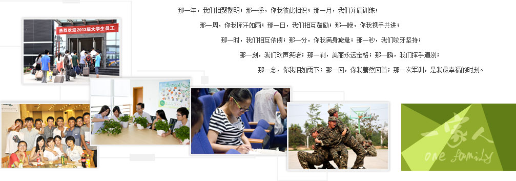 欣受秦嶺祥云之庇護(hù),感懷巴山濺淚之春秋,吐納秦皇遺風(fēng)之氣息,果腹八百沃土之簞食。久居秦川,未有單刀赴會(huì)之旅,不曾料想,今竟衣食宿寄于他鄉(xiāng)…… 黑紅的背景,綠色的園區(qū),無(wú)論是軍訓(xùn)還是培訓(xùn),這些點(diǎn)綴和值得銘記的時(shí)刻,早已和黎明精神一起幻化成了向上的動(dòng)力……美好的未來(lái)就在不遠(yuǎn)處,用一邊欣賞一邊散 步的心情去追求美好,迎接成功吧!