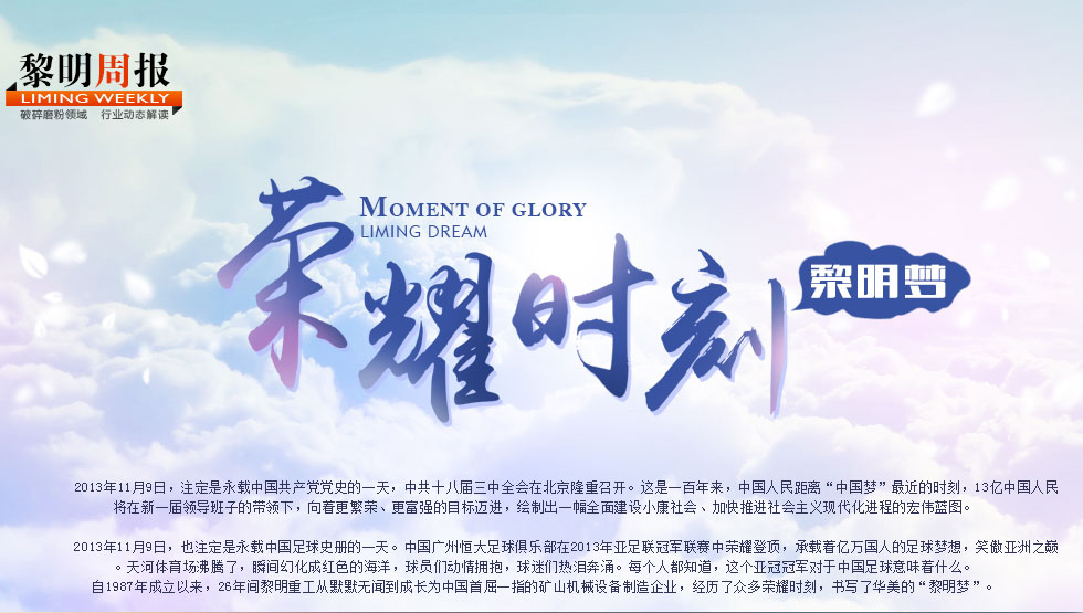 自1987年成立以來,26年間黎明重工從默默無聞到成長為業(yè)內(nèi)知名的礦山機(jī)械設(shè)備制造企業(yè),經(jīng)歷了眾多榮耀時(shí)刻,書寫了華美的"黎明夢"。