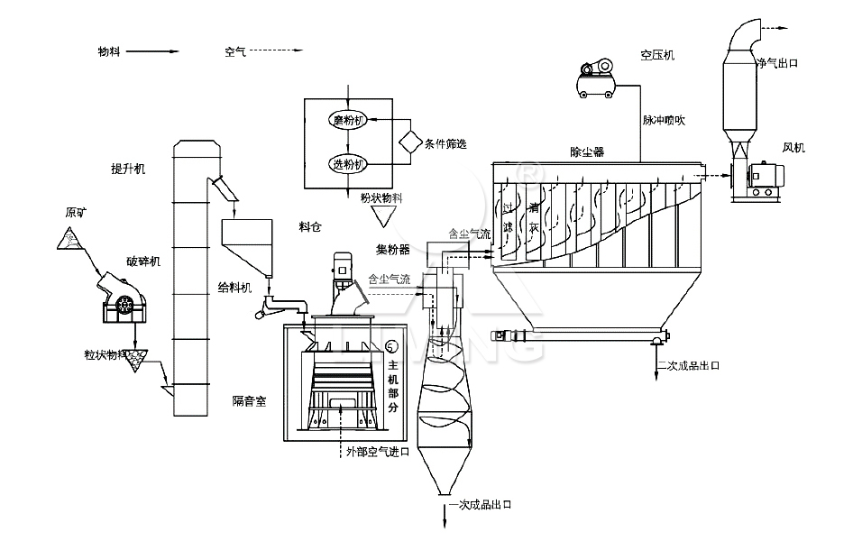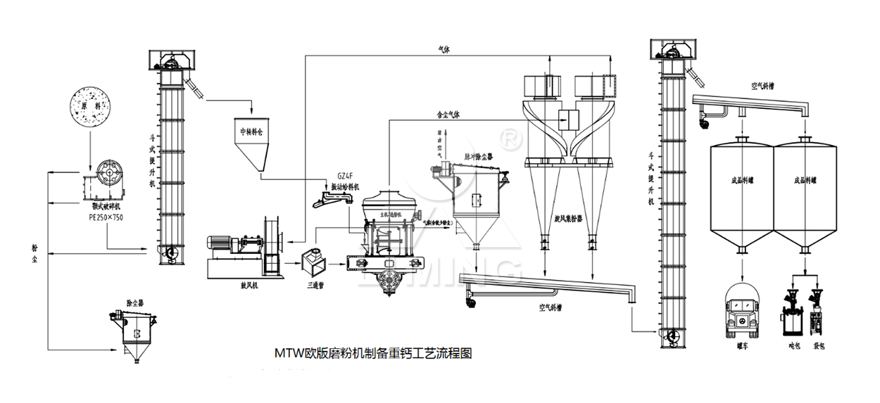 1可直接粉磨生產(chǎn)650目的重鈣,通過增加二次分級(jí)裝置,可生產(chǎn)1500目的超細(xì)重鈣,細(xì)可達(dá)2500目。