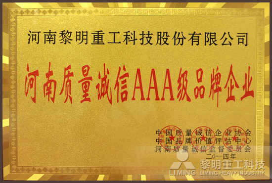 河南質(zhì)量誠(chéng)信AAA級(jí)品牌企業(yè)